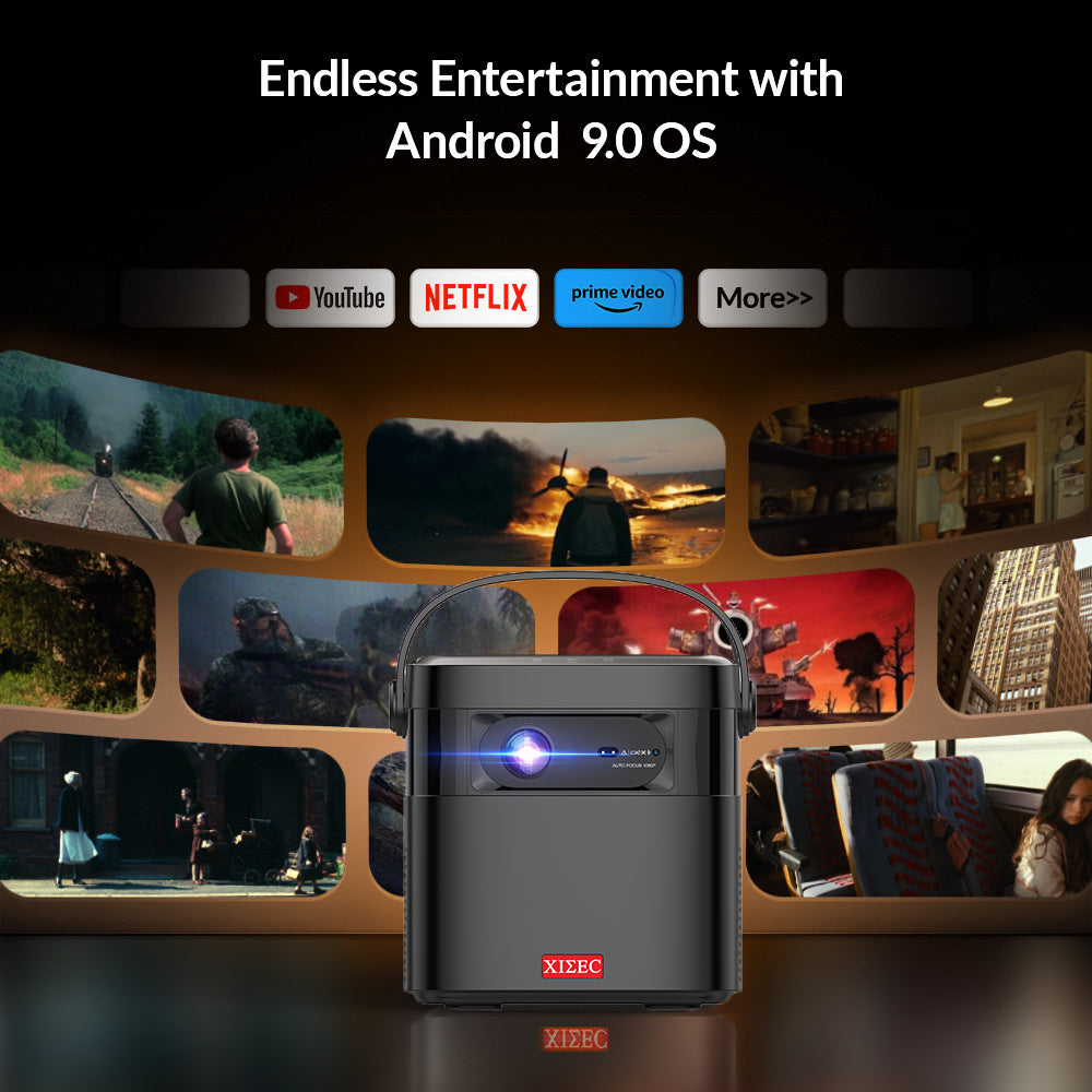 XISEC Projector 3D 4K Cinema Android WiFi Mini Portable 1080P Home Theater Video DLP Projector with Battery