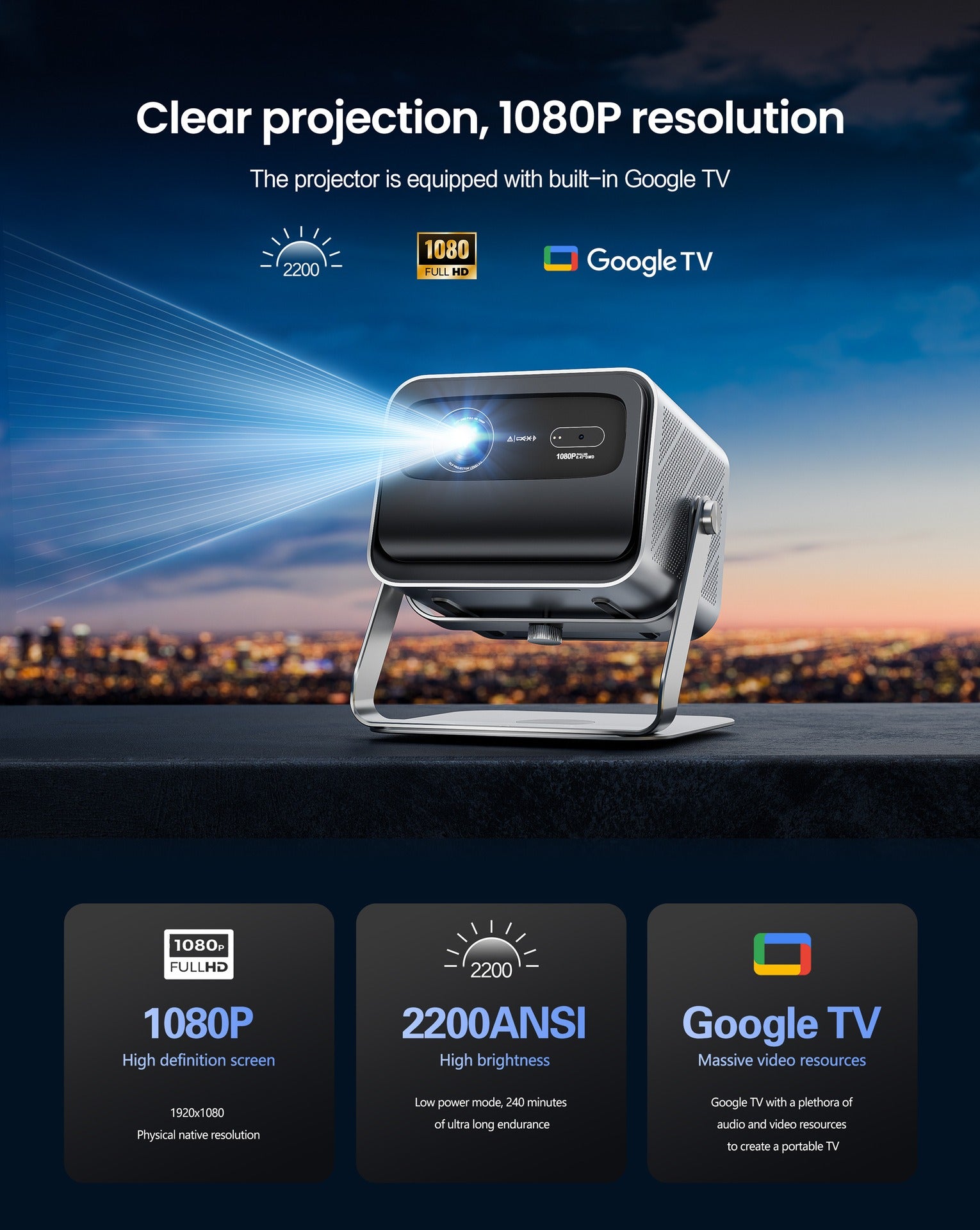 High brightness 3D DLP projector,Google TV with massive film and television resources for viewing,creat a portable TV